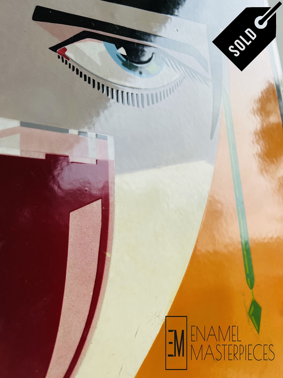 While being a student at the Nottingham Art College in 1925 Edward Loxton Knight designed what is probably his bést known and everlasting image, the striking and somewhat sinister silhouette lady-figure for Sandeman Port. Certainly his bést known achievement and milestone in the world of antique advertising since the design is – even 100 years later – still immediately recognized worldwide and related to the Sandeman port brand. Amongst international collectors without any doubt, ” The Sandeman Lady, by Loxton Knight ” is one of the most exclusive, most decorative, most wanted and therefore also among the most expensive antique enamel advertising signs in the world.